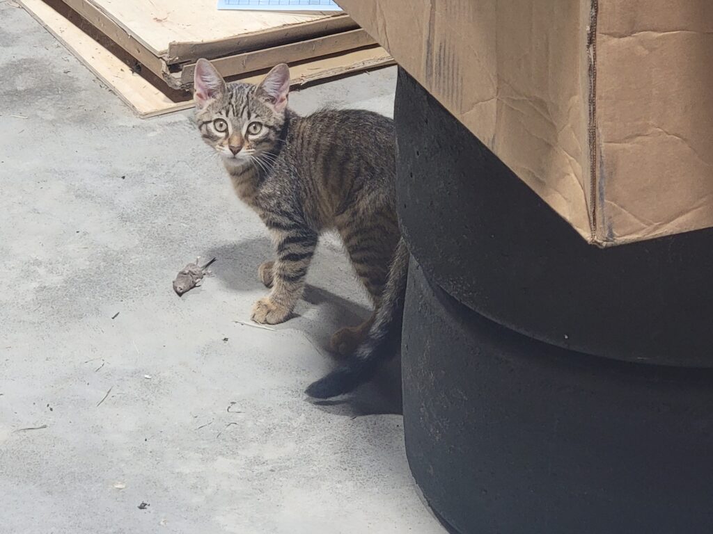 Daughter to Mama Kitty and Tiger Dad, Magnum and her sister Hemi were both successfully pursued by Albino Kitty… and someone else. Her children have never seen the outdoors, and — with the exception of SNOBES — don’t want to.