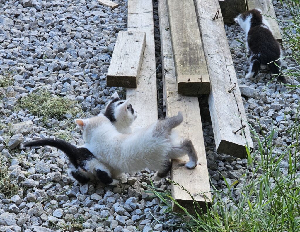 Together, the three Sibbings controlled access to the morning meal — but Tiger Dad is committed to killing them or driving them off. The balance of power is an uncertain one, and the addition of Attack Kitty to the mix doesn’t make things easier for this outdoor tribe.
